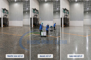 - Xử lý các vết bẩn đặc thù: Tẩy sơn, tẩy vết rỉ sét do rò rỉ máy móc trên sàn bằng các dòng hóa chất công nghiệp nhập khẩu từ Malaysia, Singapore.